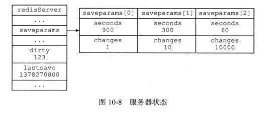 配置save选项,让服务器每隔一段时间自动执行一次bgsave命令。通过redisServer中的struct saveparam *saveparams字段存储save选项。